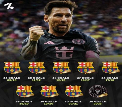 10月19日宣 本赛季美职联常规赛全部结束,梅西以28场29球荣膺射手榜第一。据统计,这也是梅西生涯第9次获得联赛射手榜第一,此前8次均是在巴萨效力时期夺得西甲射手王