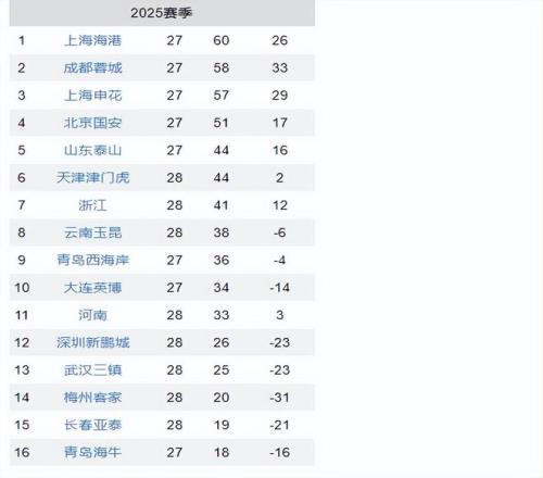 2场绝平河南22浙江长春亚泰22天津津门虎中超最新积分榜出炉