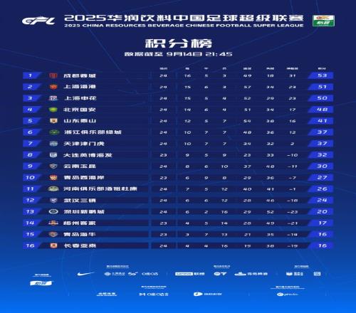 中超第24轮,成都蓉城1-0战胜长春亚泰,当轮比赛全部结束后,蓉城积53分名列中超榜首,领先身后的海港2分。但随后他们打平了申花、浙江队和青岛西海岸,仅在第27轮战胜了梅州客家。关键阶段连续的丢分,以及今天的输球,让蓉城彻底无缘本赛季中超冠军。