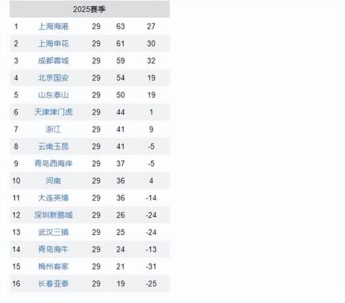 10!10!海牛送亚泰降级,玉昆锁定前8,中超最新积分榜出炉