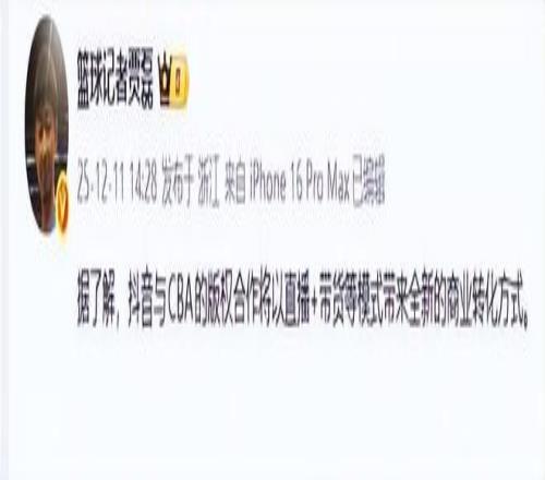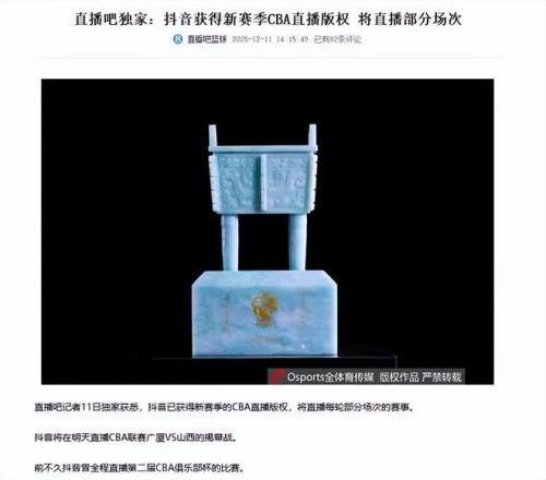 多家媒体和记者确认了这一重磅消息,篮球资讯独家报道:抖音获得新赛季CBA直播版权,将直播部分场次。看来一些不重的场次没有直播。篮球记者贾磊报道,“抖音与CBA的版权合作将以直播+带货等模式带来全新的商业转化方式。”