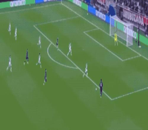 上半场补时阶段,姆巴佩无球过人足够精彩,之后的传中被防守球员挡进自家球门。